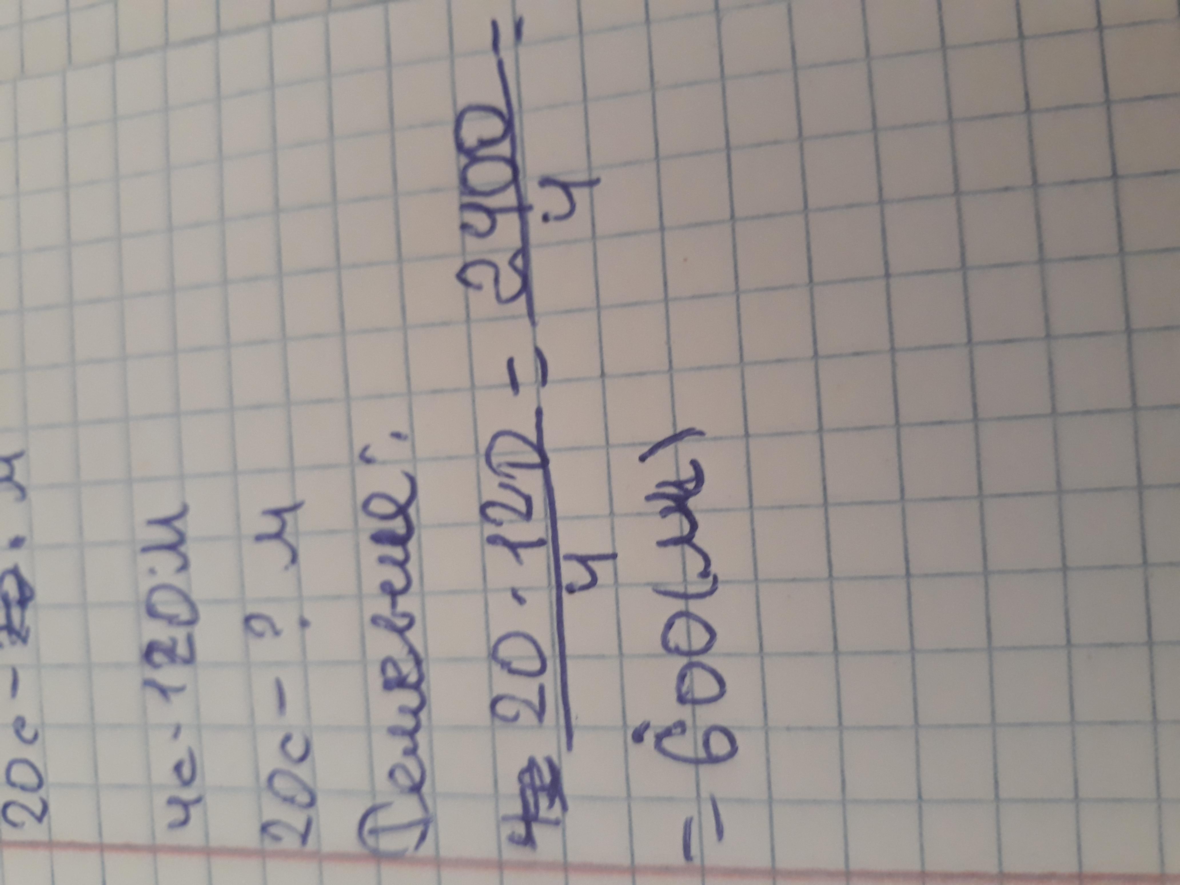 При равномерном движении поезд за 4 секунды прошел 120 метров.Сколько метров проедет поезд за 20 секунд