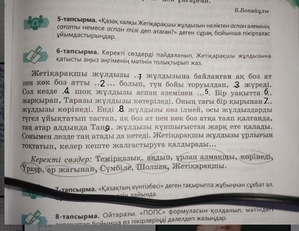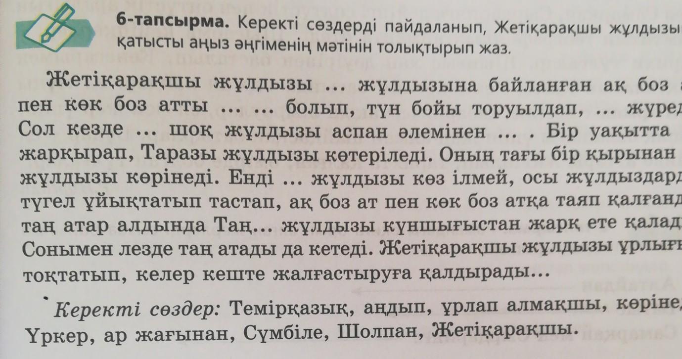 6-тапсырма. Керекті сөздерді пайдаланып, Жетіқарақшы жұлдызына