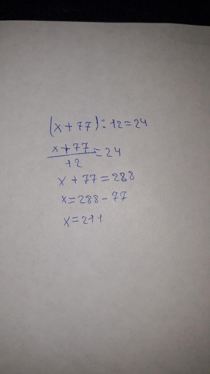 реши уравнение (х+77):12=24