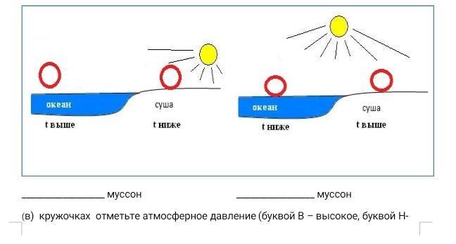 (в) кружочках отметьте атмосферное давление (буквой В – высокое, буквой