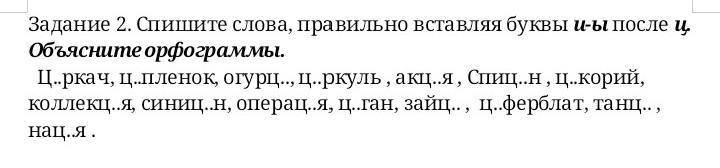 Спишите слова, правильно вставляя буквы и-ы после ц.