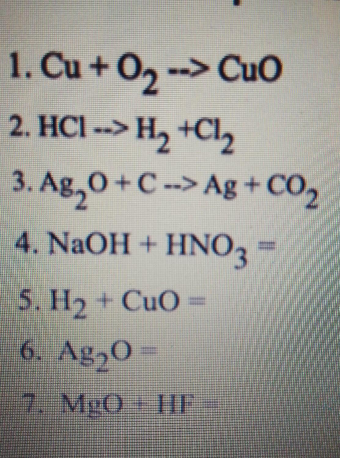 Закончите уравнения и расставьте коэффициенты в уравнения химических реакций. Укажите тип каждой реакции.