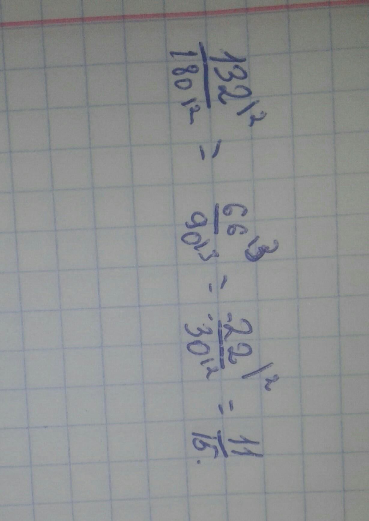 132/180 сокращаем на 2 и получается 66/90, сокращаем еще на 2 и получается 33/45, сокращаем на 3 и получаем 11/15 дальше дробь не сокращается.