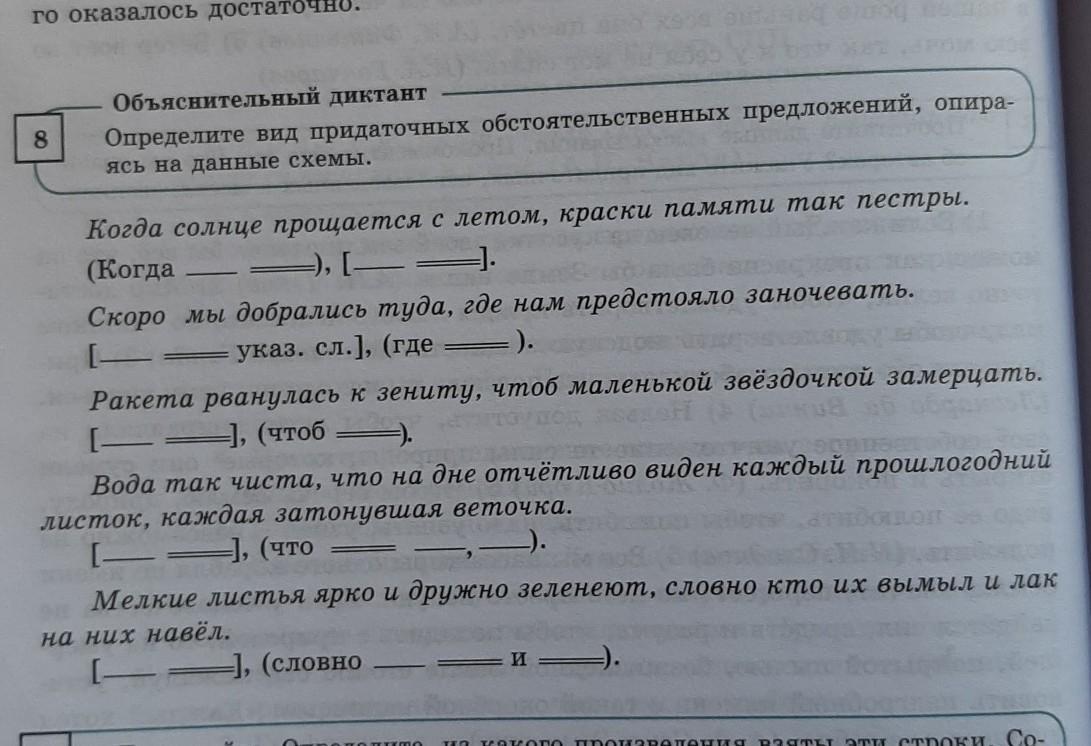 Определите вид придаточного обстоятельственных предложений,опираясь на данные схемы