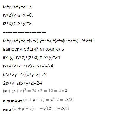 (x+y)(x+y+z)+(y+z)(y+z+x)+(z+x)(z+x+y)=7+8+9