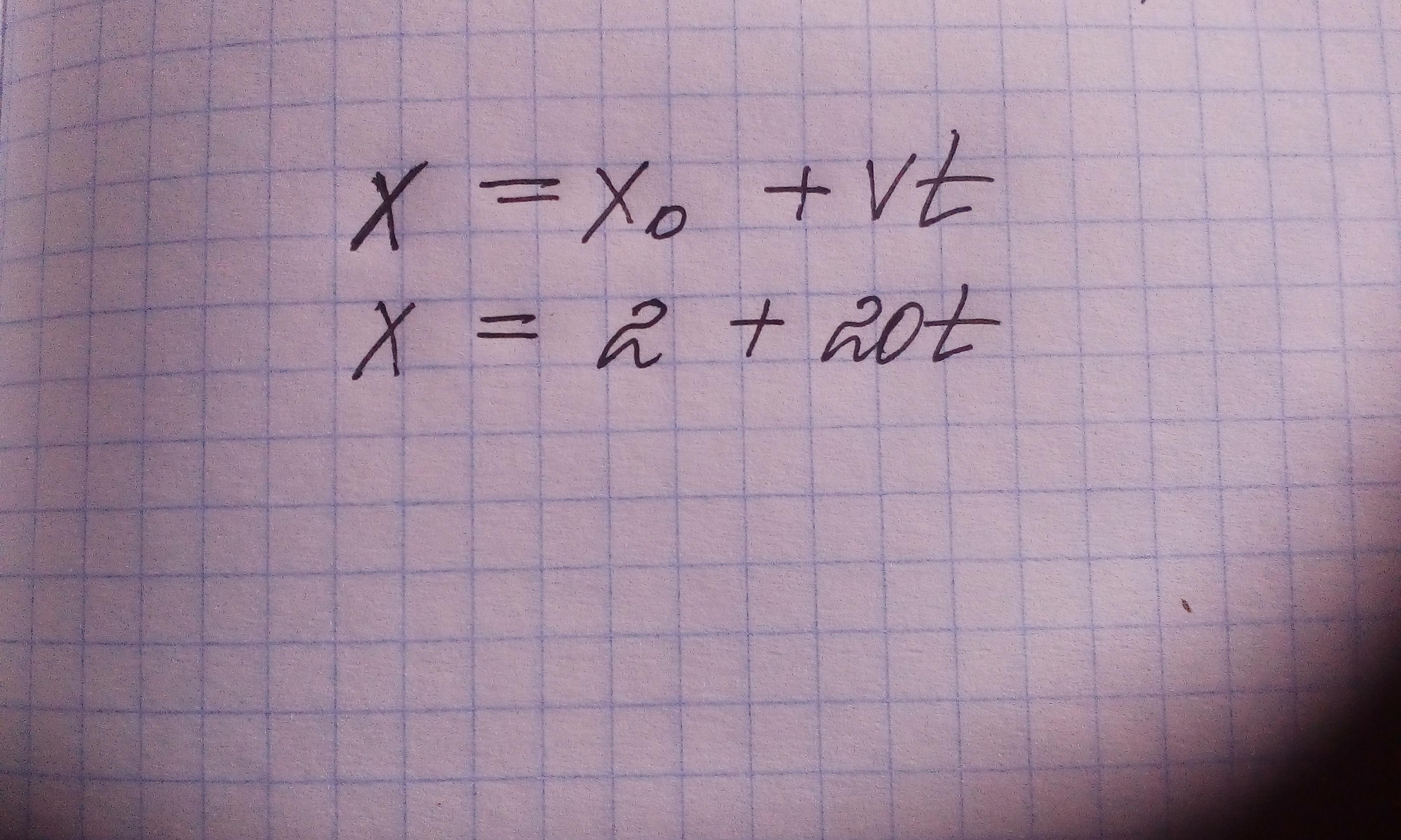 запишите уравнения координаты при равномерном движении материальной точкт и постройте график зависимости от времени если начальное положение точки х0=2 м и она движется со скоростью 8=20м/с