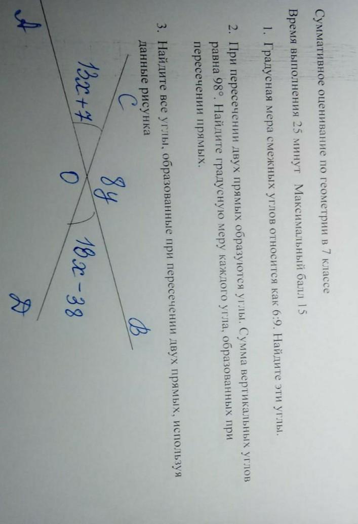 2)Как мы знаем вертикальные углы равны между собой ⇒ 98°/2=49°