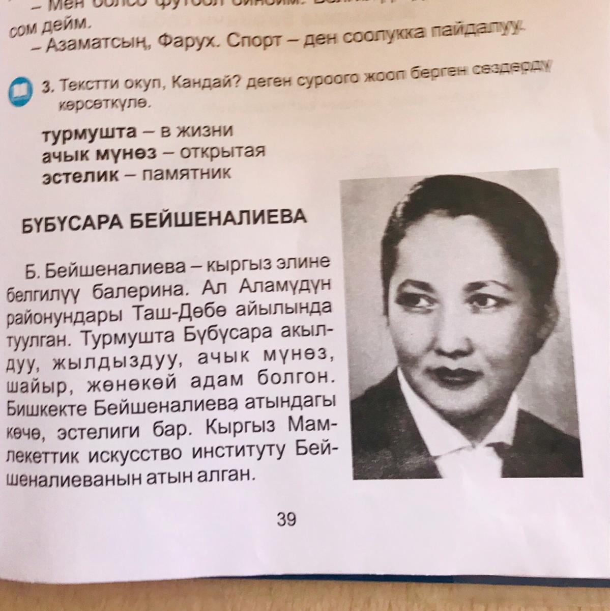 1.Б.Бейшеналиева кыргыз элине белгилуу балерина болгон.