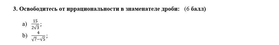 b) 4/(√7-√5)=4/(√7-√5)* (√7+√5)/(√7+√5)=4(√7+√5)/(7-5)= =4(√7+√5)/2=2(√7+√5)=2√7+2√5