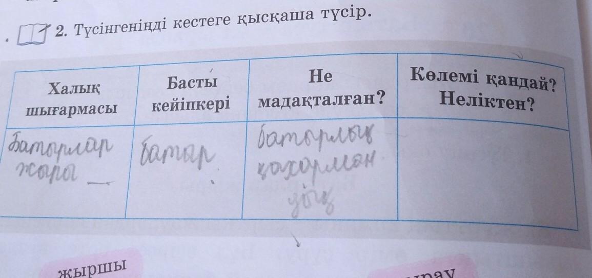 Г2. Түсінгеніңді кестеге қысқаша түсір.