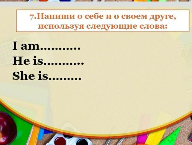 Запиши о себе и своём друге используя некоторые слова I am He is She is