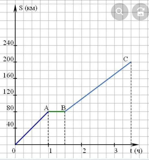 1. Участок 0-А Автомобиль проехал: S₁ = v₁t₁ = 80*1 = 80 (км)