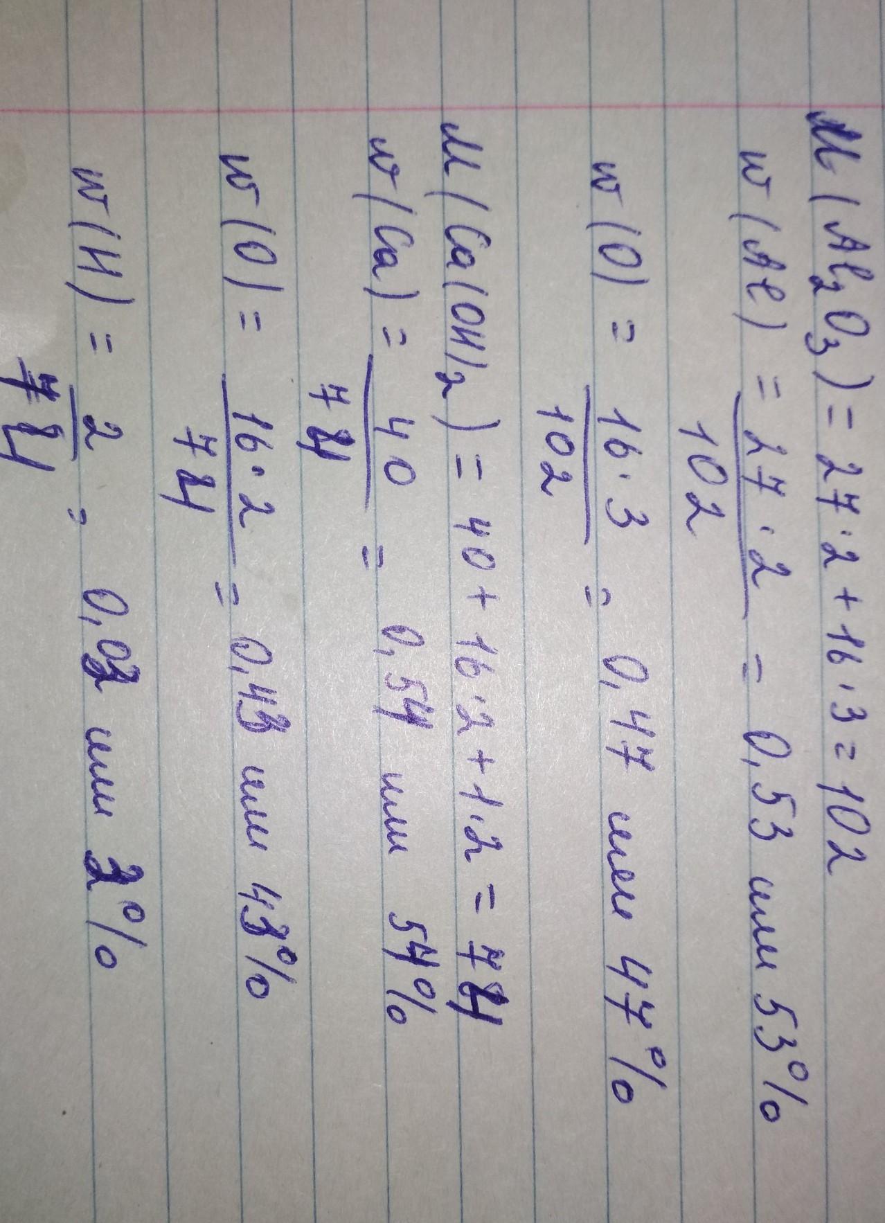 определите относительную молекулярную массу следующих веществ и массовую долю каждого элемента:оксид алюминия, гидроксид кальция