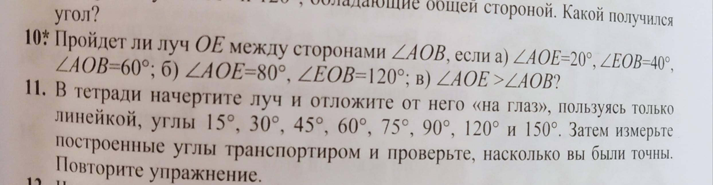 Просто "на глаз" начерти луч и отложи от него, пользуясь только линейкой, данные углы...