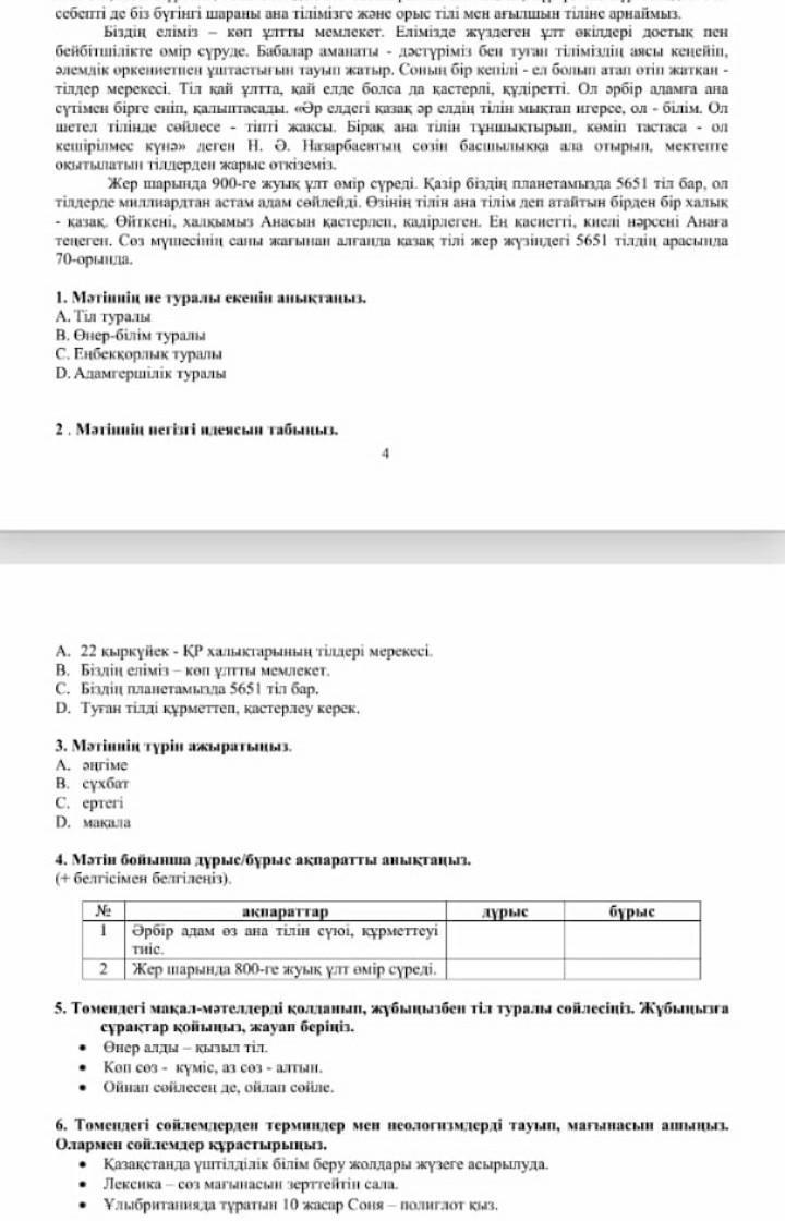 4) 1.Дұрыс 2. Бұрыс