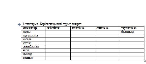 Жіктік:Баламын ,Мұғаліммін, қала, құстар,сыныппыз,әкемін,қыздармыз,доспыз