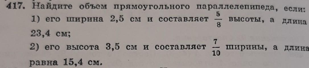2)ширина равна 3.5/(7/10)=5/см/, объем равен 3.5*5*15.4=269.5/см³/