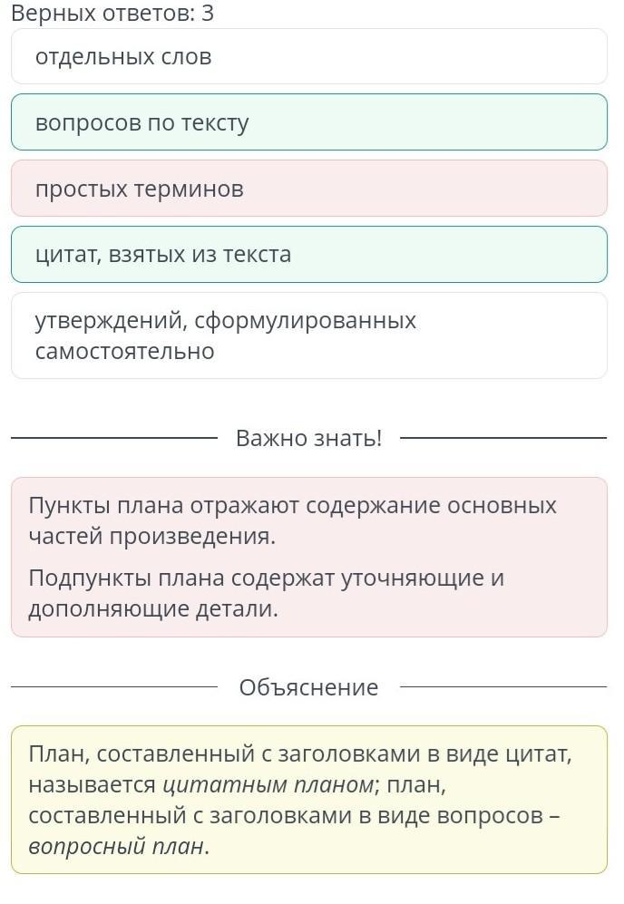 Заголовки для пунктов и подпунктов плана могут быть сформулированы в виде