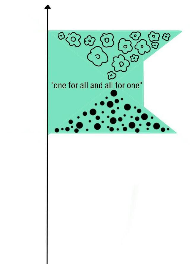 • посередине флага надпись «один за всех и всех за одного" - это значит, что ребята из нашего класса помогают друг другу и не оставят в беде.