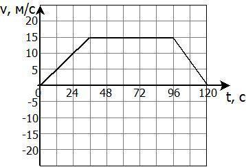 На рисунку зображена залежність швидкості тіла від часу. Знайдіть шлях (в км), який пройшло тіло за весь час руху.