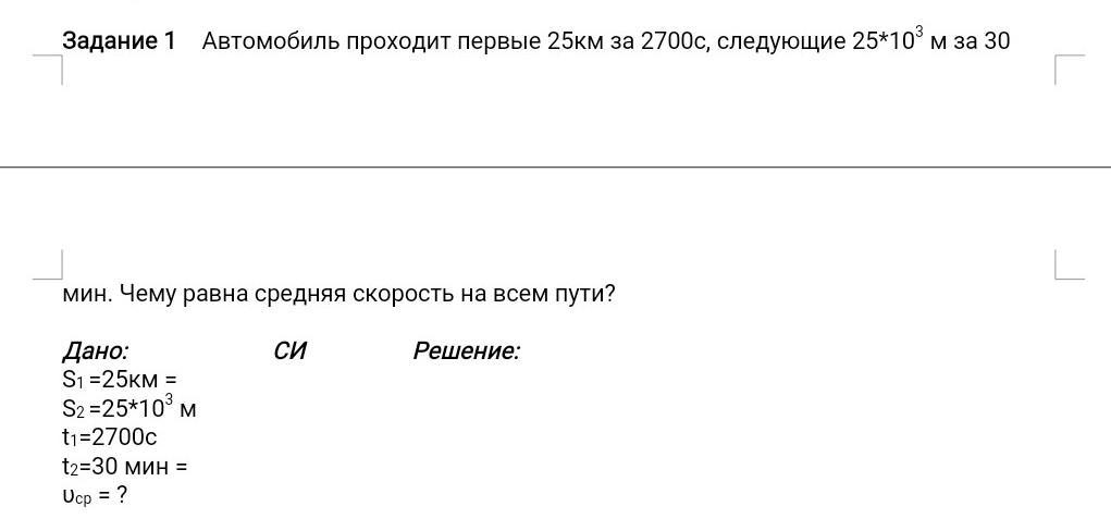 vcр=s1+s2/t1+t2=25×10³+25×10³/1800+2700=50×10³/4500=11,1м/с
