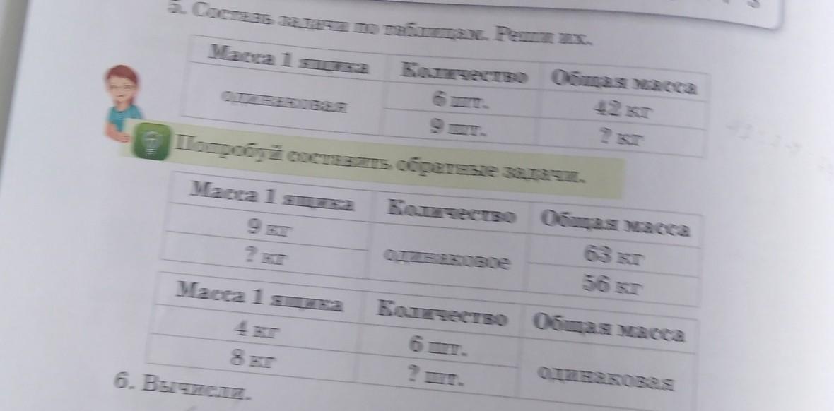 5. Сума в задачи и таблицам. Реши их.
