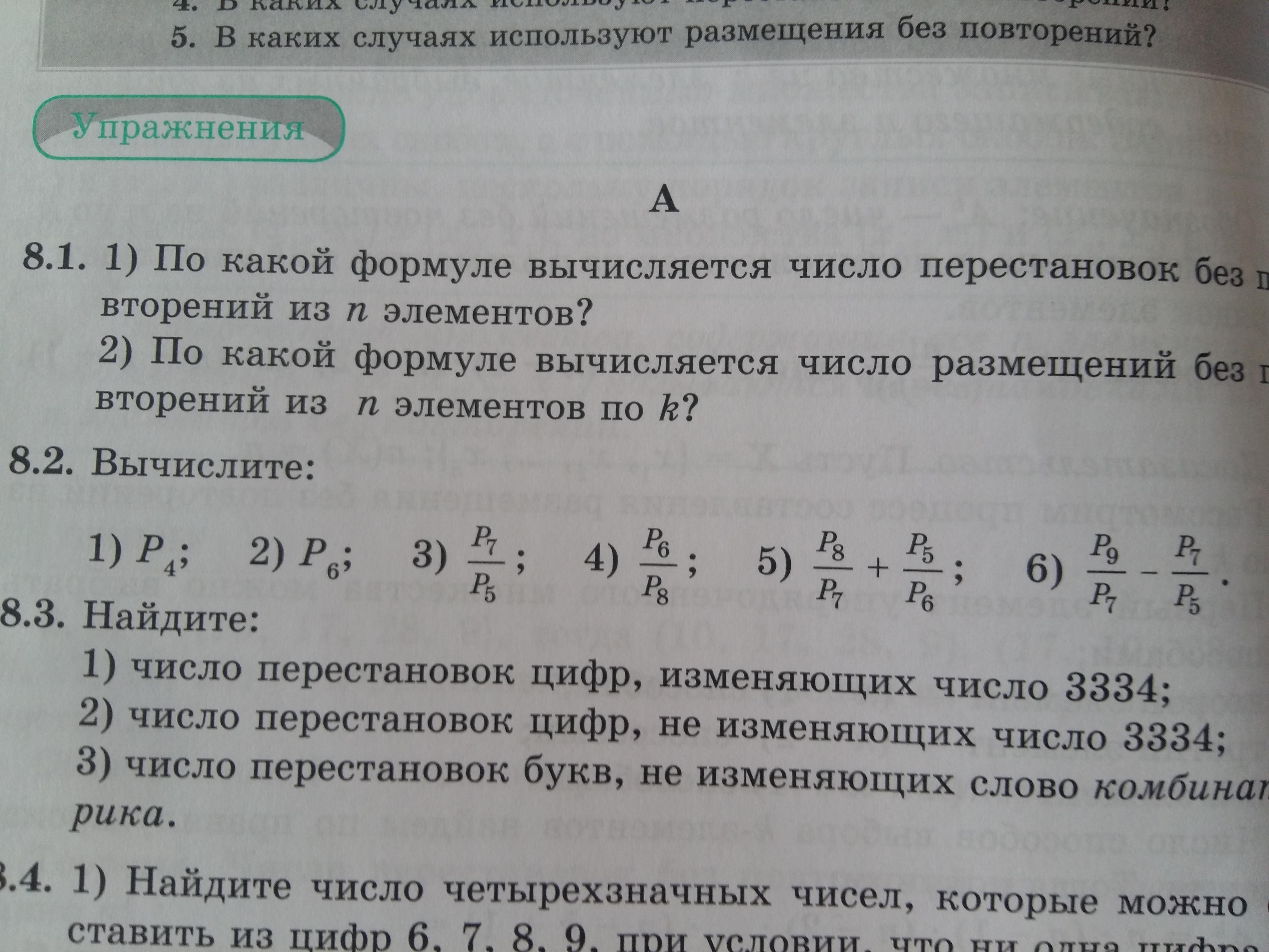 Вычислите 1)P4; 2)P6; 3)P7/P5;