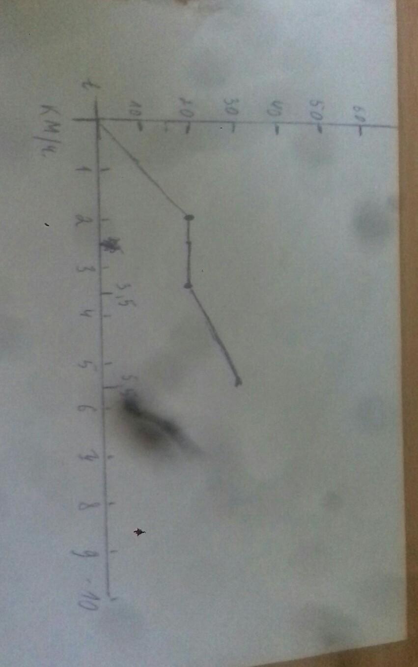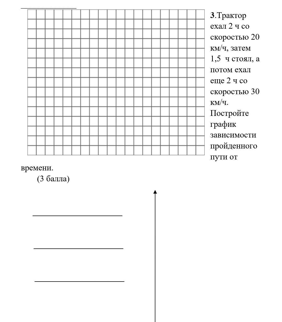3.Трактор ехал 2 ч со скоростью 20 км/ч, затем 1,5 ч стоял, а потом ехал еще 2 ч со скоростью 30 км/ч. Постройте график зависимости пройденного пути от времени.