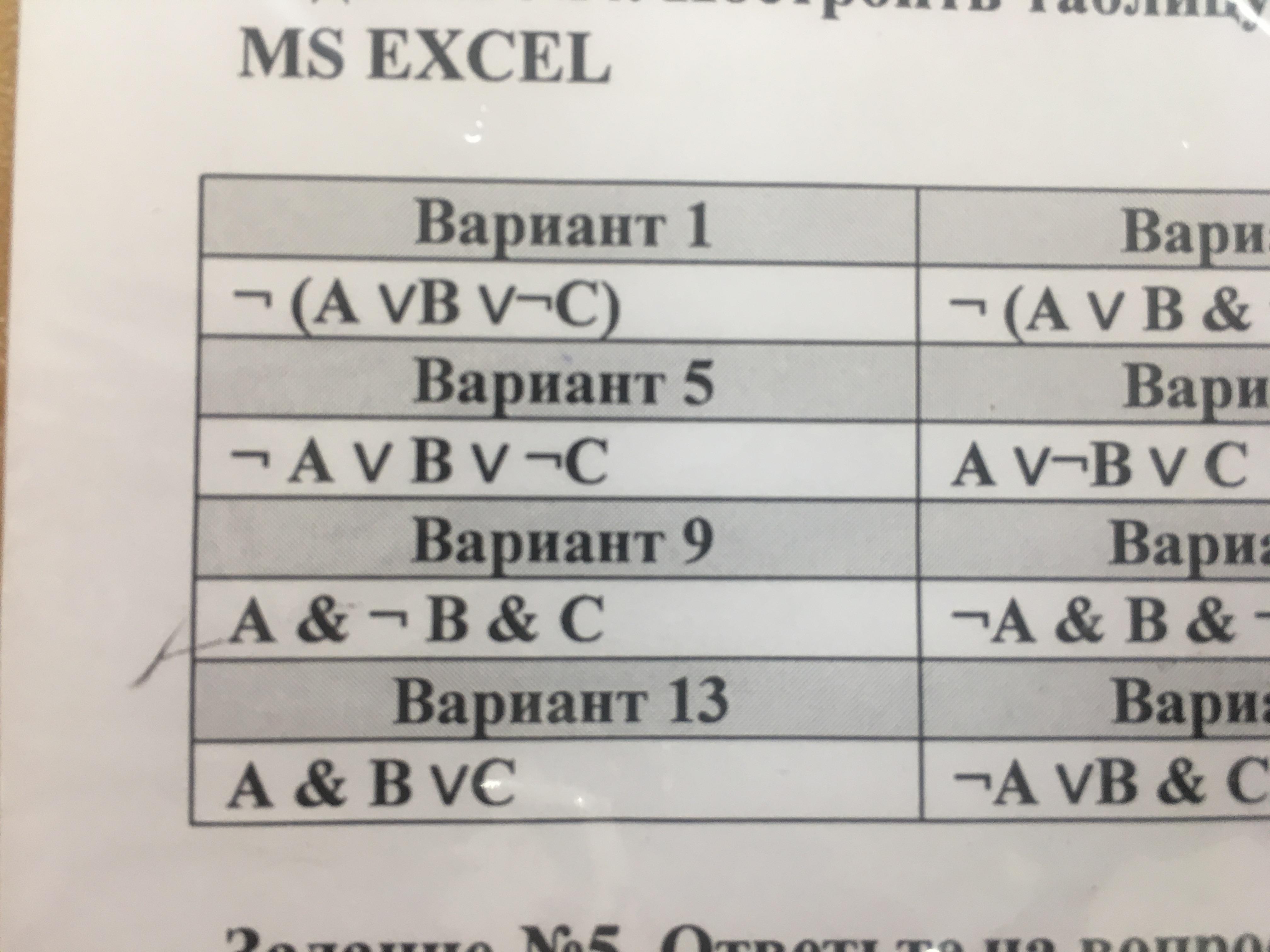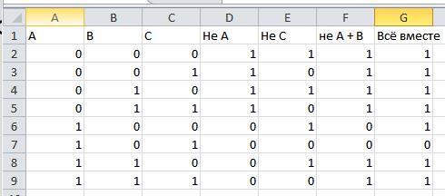 ПОСТРОЙТЕ ТАБЛИЦУ ИСТИННОСТИ ДЛЯ ЗАДАННОГО ЛОГИЧЕСКОГО ВЫРАЖЕНИЯ ИСПОЛЬЗУЯ MS EXCEL