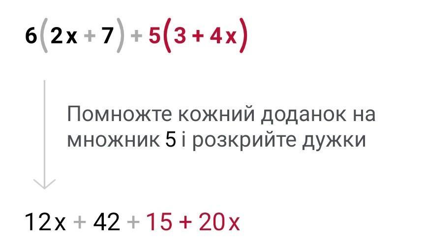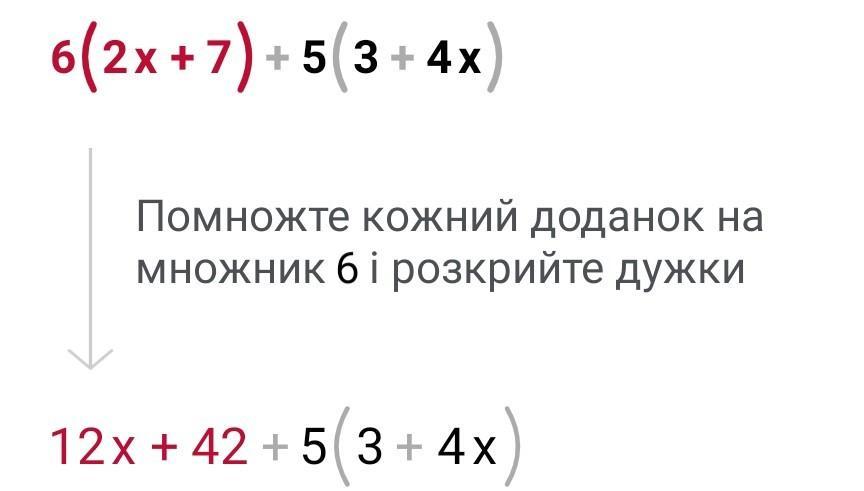 6(2x+7)+5(3+4x)= 12x + 42+15+20x= 32x+ 57