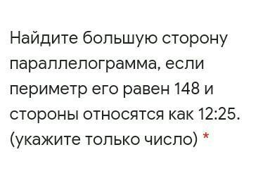 Найдите большую сторону параллелограмма, если периметр его равен 148 и стороны относятся как 12,25