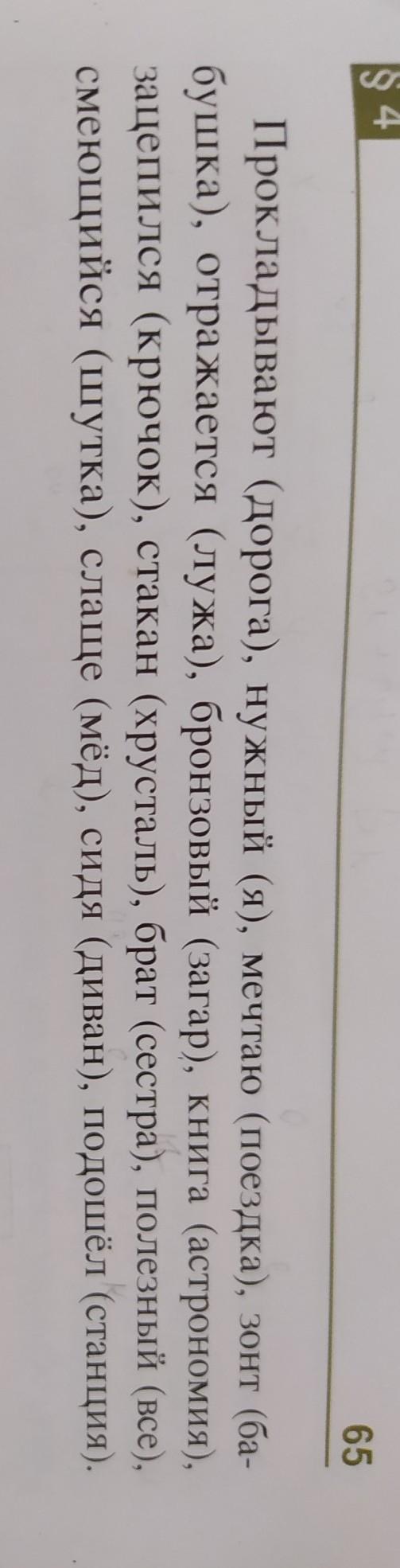 Прокладывают дорогу, нужен я, мечтаю о поездке, зонт бабушки, отражается в луже, бронзовый загар, книга по астрономии, зацепился за крючок, хрустальный стакан, или стакан из хрусталя, сестра брата, общеполезный, смеющийся над шуткой, слаще меда, сидя на диване, подошел к станции.