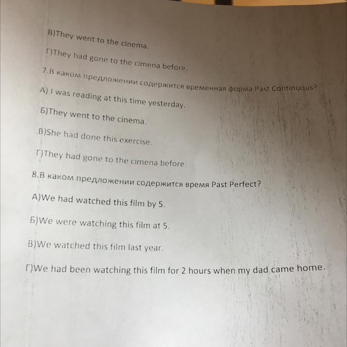 7) I was reading at this time yesterday