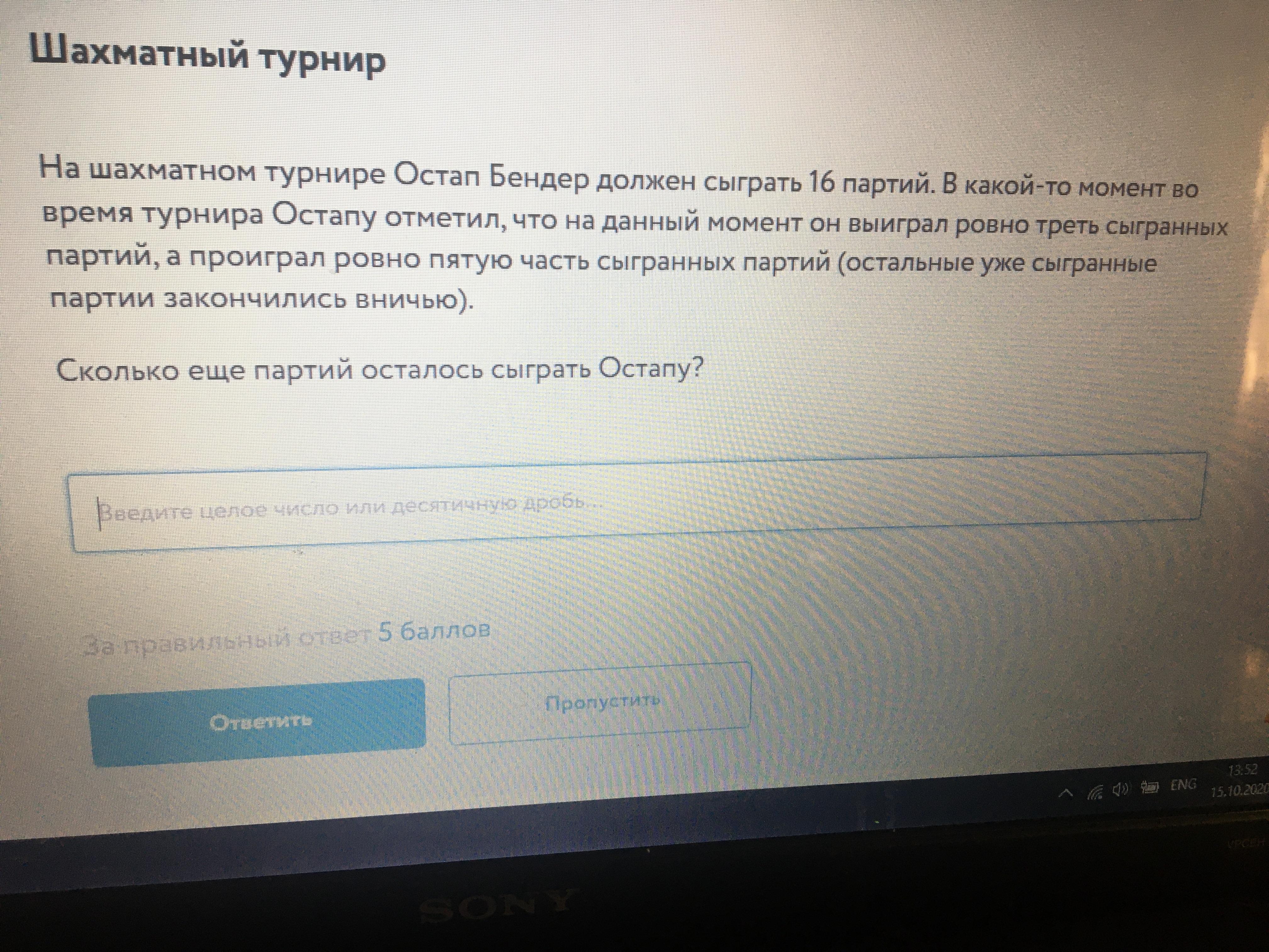 3)16-(5 1/3+3,2)=8 8/15≈8,5(партий)-осталось