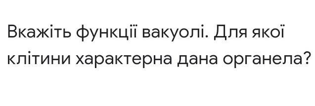 Объяснение:Вакуолі - великі бульбашки або порожнини, обмежені мембраною від гіалоплазми і заповнені переважно водним вмістом. Вакуолі характерні для клітин рослин, грибів і багатьох протистов, вони утворюються з бульбашковидних розширень ЕРС або з бульбашок комплексу Гольджі.