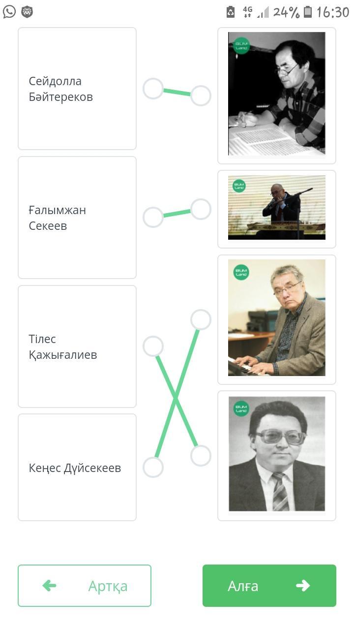 Қазақстанның заманауи музыкалық мәдениетінің жарқын өкілдерінің есімдерін суретімен юайланыстыр.