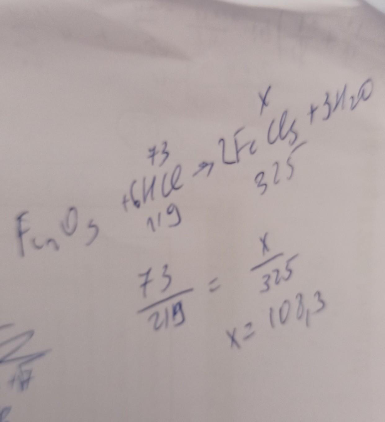 Рассчитайте массу хлорида железа (|||), который образуется при растворении оксида железа (|||) в 73г соляной кислоты.