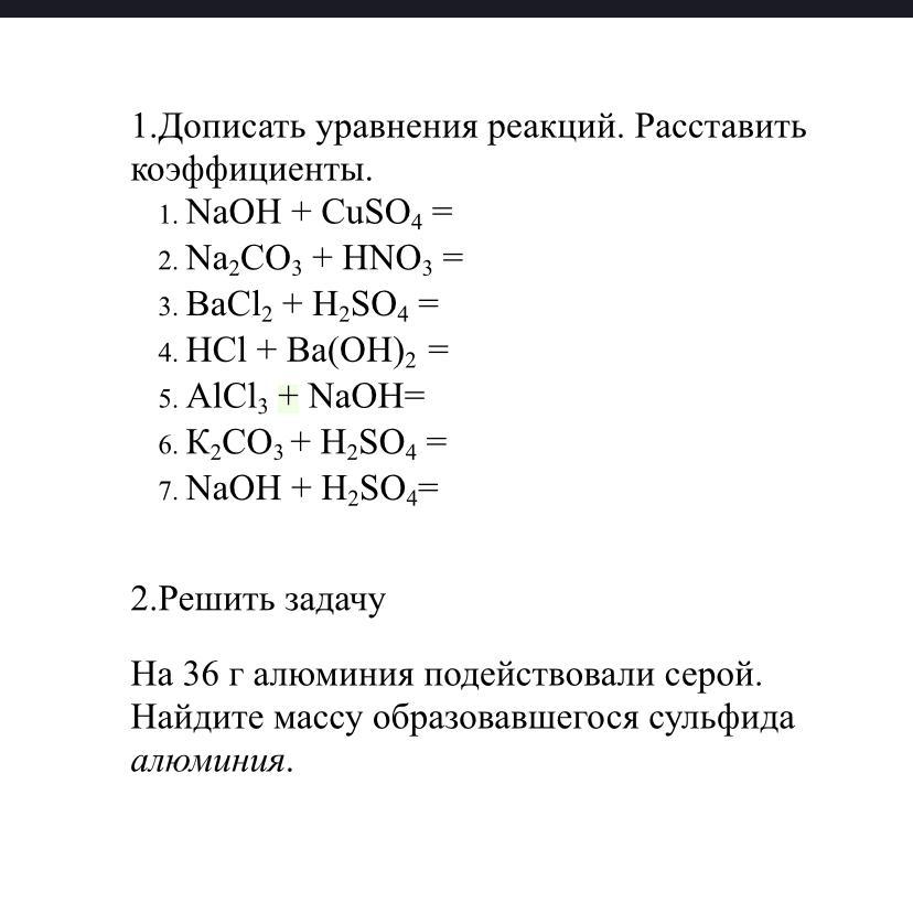 1) 2NaOH + CuSO4 = Cu(OH)2↓ + Na2SO4