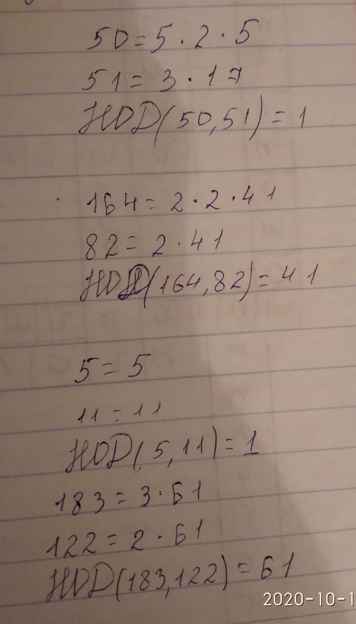 Нод(50;51)=1