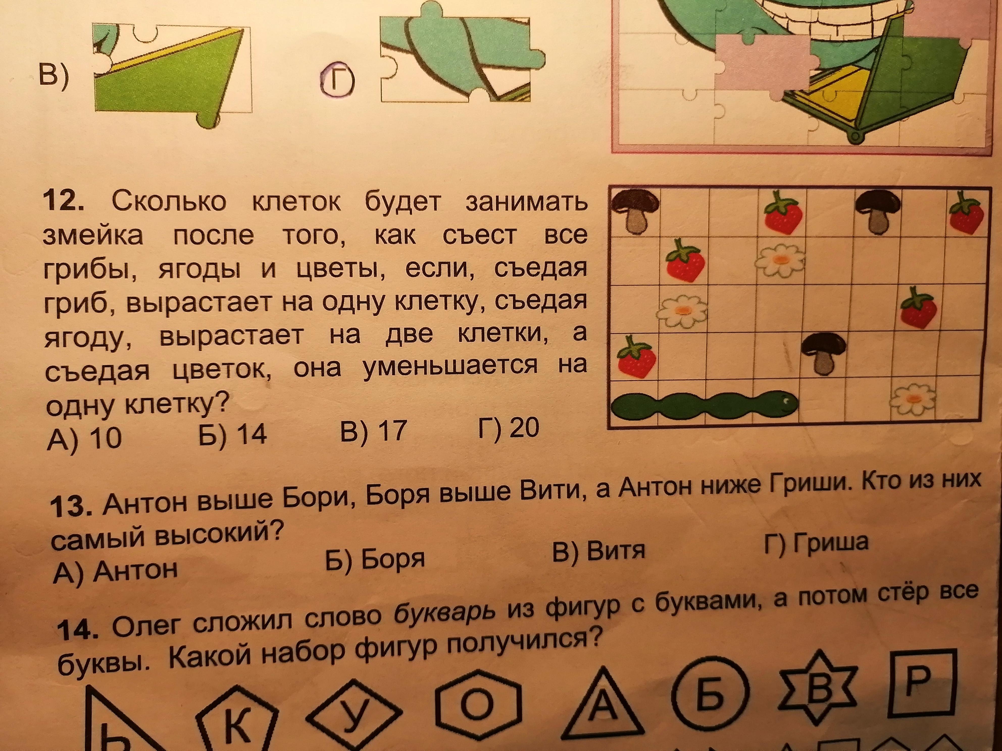 14) ○, ◇, (пятиугольник, там нде буква к), ☆, треугольник, □, (треугольник, там где буква ь)