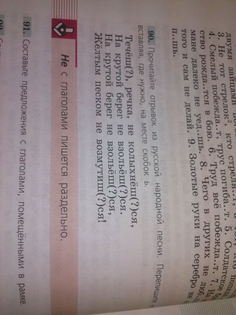 В номере 90 во всех словах ставится мягкий знак.Течёшь (окончание ёшь), не колыхнёшься (окончание ёшь), взольёшься (окончание ёшь), возмутишься (окончание ишь)