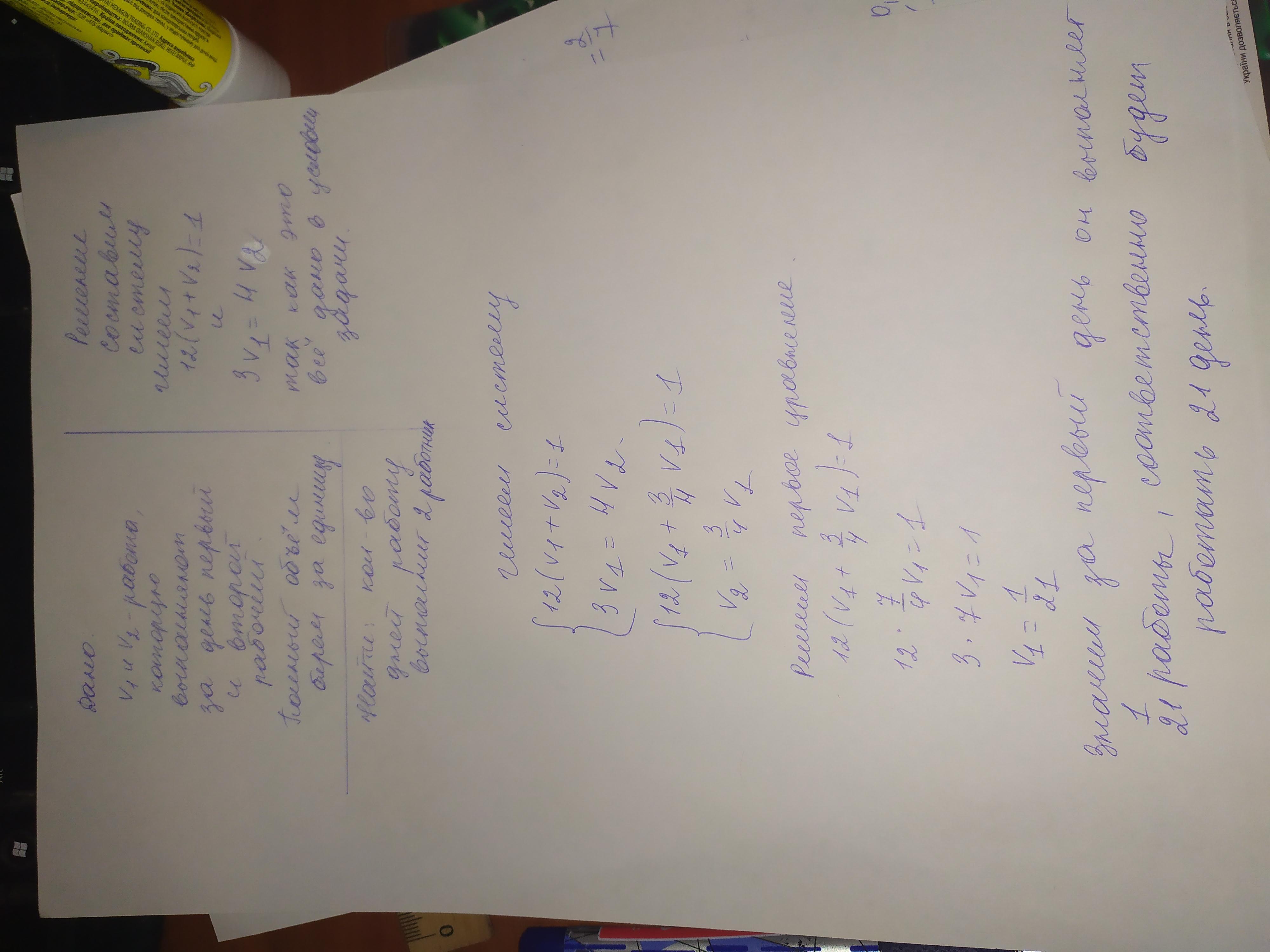 Двое рабочих работая совместно могут выложить работу за 12 дней,за сколько времени выполнит второй работник,если он за 3 дня выполняет такую часть работы,как первый за 4 дня.