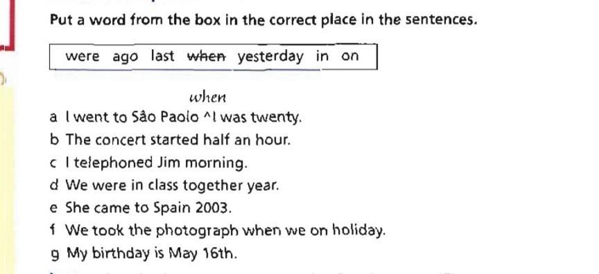 Put a word frorn the box in the correct place in the sentences.