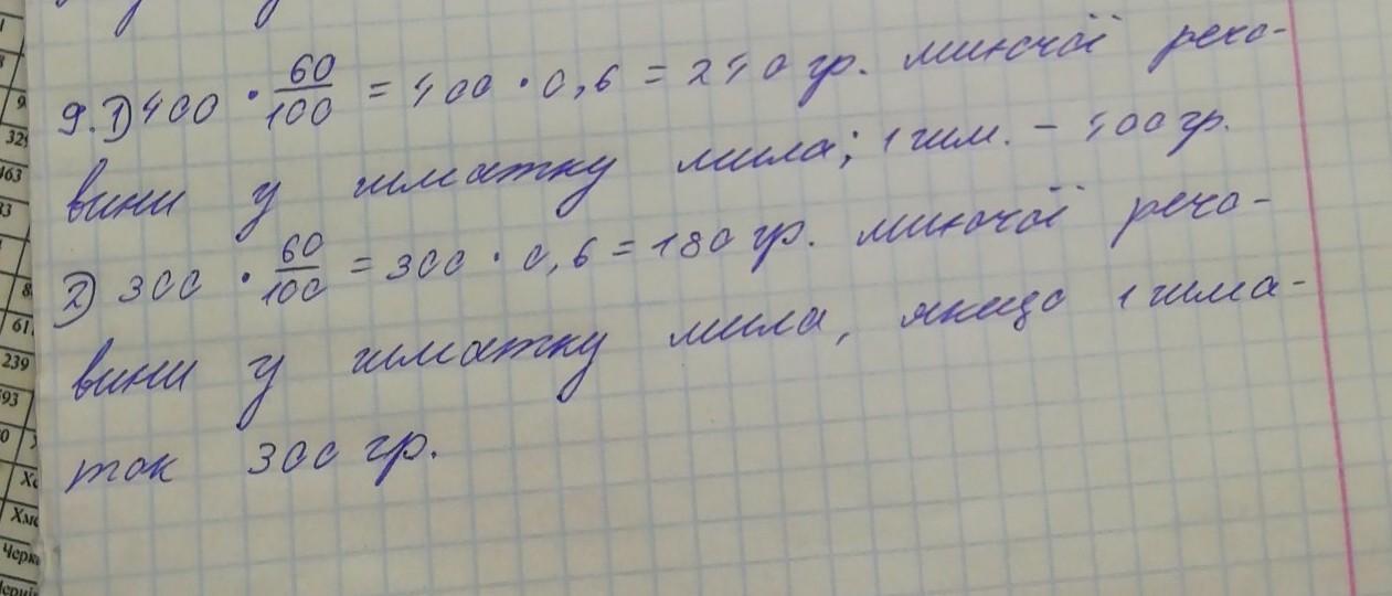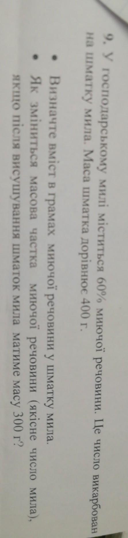 У господарському милі міститься 60%6 миючот речовини. Це число викарбован на шматку мила. Маса шматка дорівнюс 400г. . Визначте вміст в грамах миючої речовини у шматку мила. Як зміниться масова частка миючої речовини (якісне число мила). якно після висушування шматок мила матиме масу 500