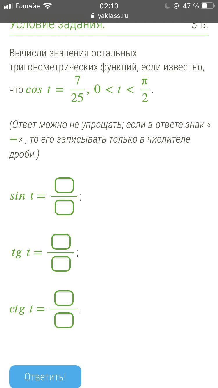 т.к. t∈ 1 четверти. то все значения функций там положительны.