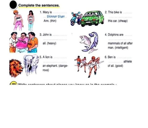 2 Cheaper than 3 Heavier than 4 are most intelligent 5 more dangerous than 6 the best ... думаю так.