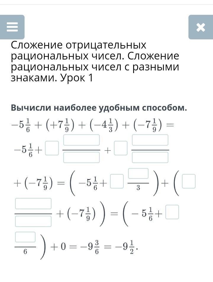 -5/1/6+(+7/1/9)+(-4/1/3)+(-7/1/9)=(-5/1/6)+(-4/1/3)+(+7/1/9)+(-7/1/9)=((-5/1/6)+(-4/1/3))+((+7/1/9)+(-7/1/9))=(-5/1/6)+(-4/2/6)+0=(-9/3/6)=(-9/1/2)