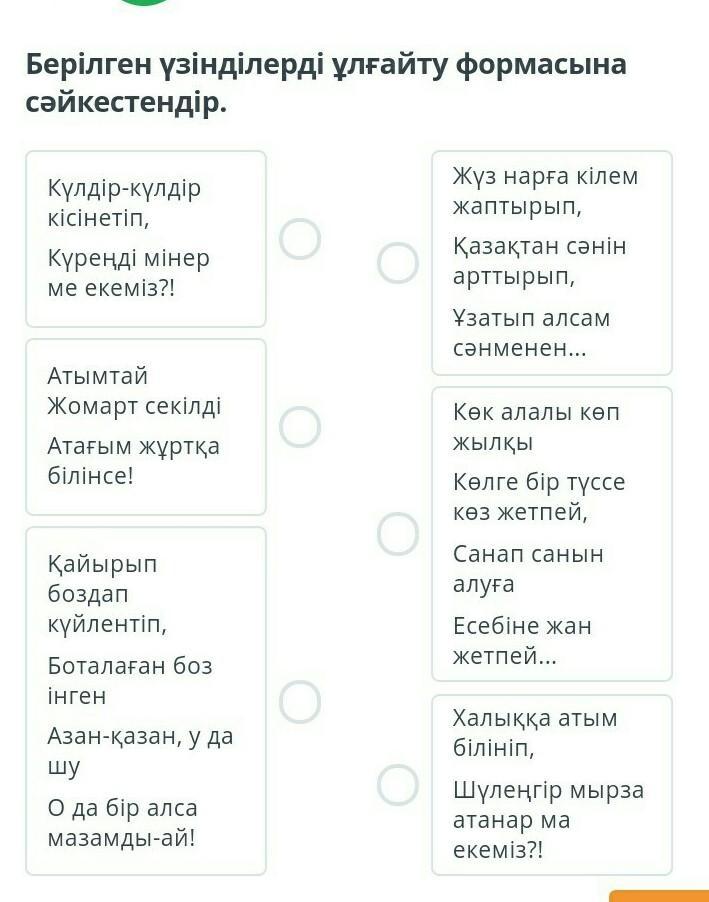 Берілген үзінділерді ұлғайту формасына сәйкестендір.