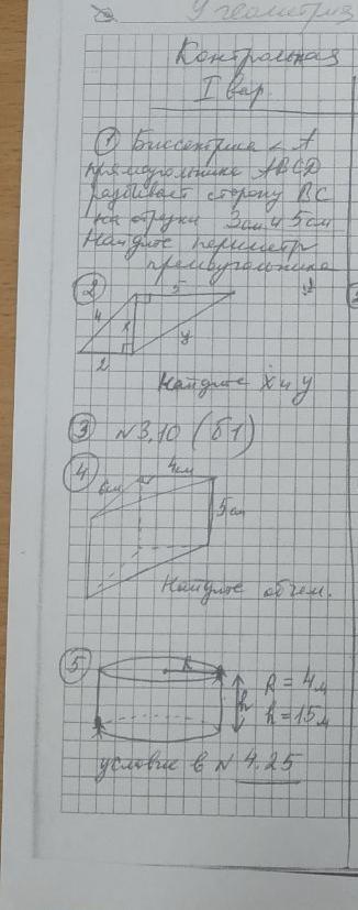 В первой задаче, биссектриса делит прямоугольник на равнобедренный треугольник. Соответственно сторона АВ будет равна 5 см. А сторона ВС равна 5+3= 8 см. И теперь 5 +8 и умножаем на 2. Получаем 26