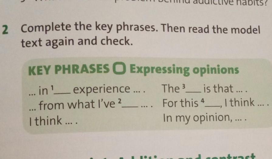 2 Complete the key phrases. Then read the model